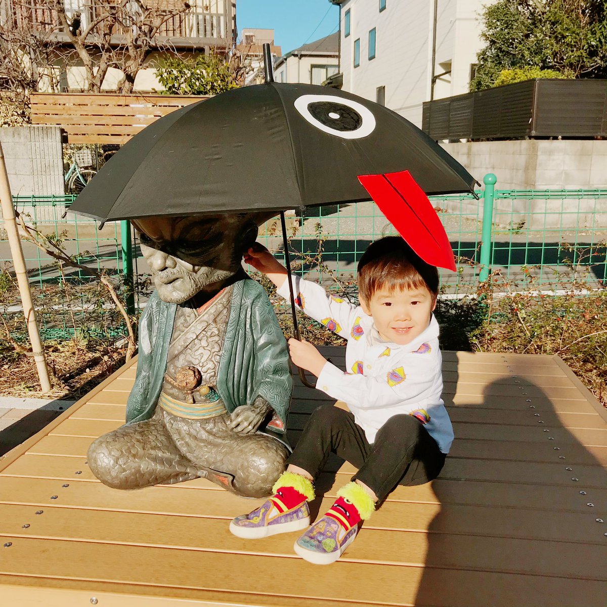 #妖怪 シリーズ*#百目シャツ#妖怪靴 を作りました!!#妖怪好き の息子は雨が降ってなくても「からかさおばけと一緒に行く!」といつも傘を抱えて持っていくので#からかさおばけ も作りました。笑#キッズプロジェクト 妖怪系も色々増やします^_^*#まめアート#ペイント#ハンドメイドpic.twitter.com/zBMLQPA4iS