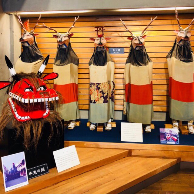 江戸末期から昭和初期の様々な生活用具が置いてあって面白かったー(*⁰▿⁰*)。 展示室以外に保管してあるとこも見れるん。 この辺りは五ツ鹿なんやねー。 私も小学生の時にやったことあります。 もっと可愛い頭やった気がするけど。