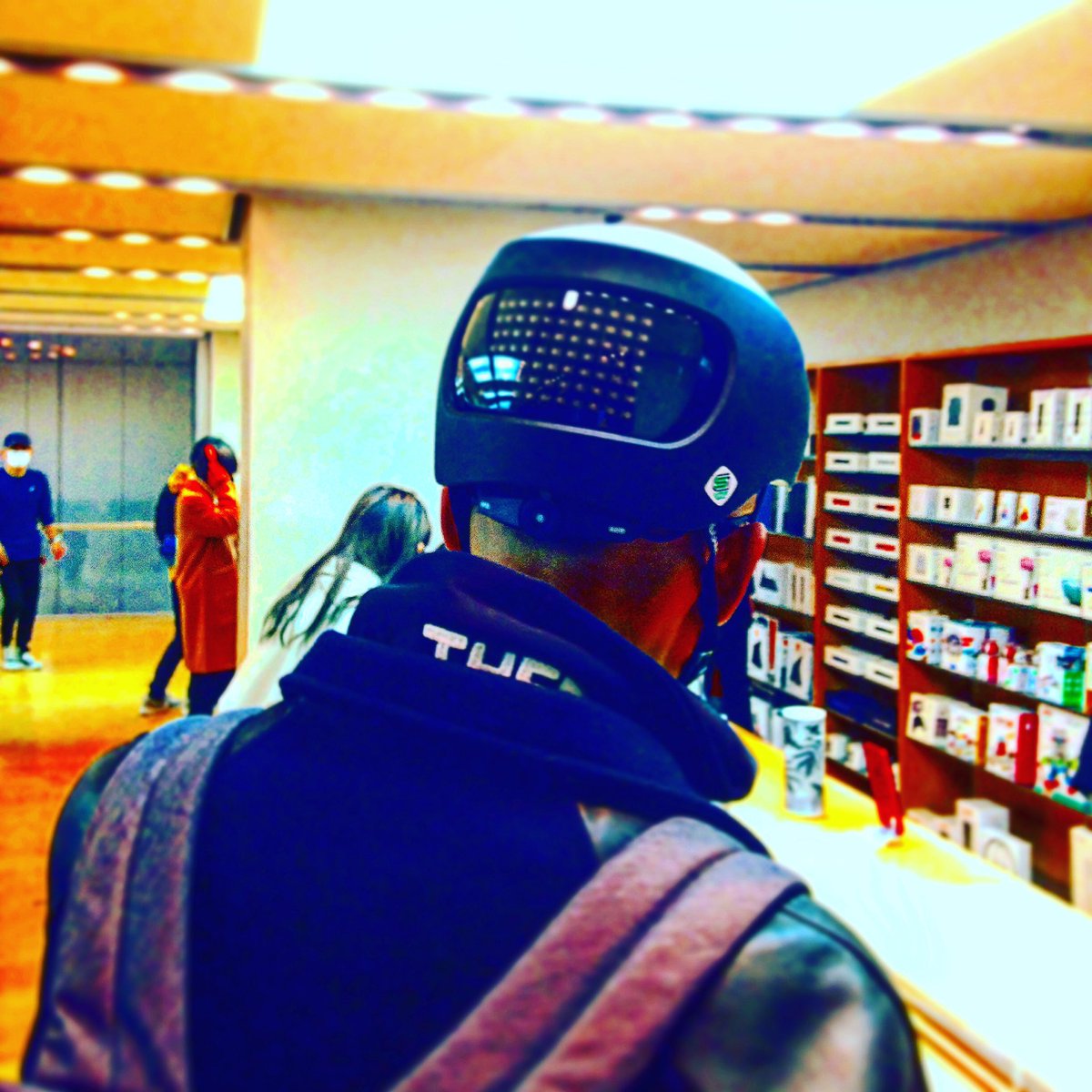 It was me taken by Apple Store staff. The blinker unit is visible on the back of the head. The headlight unit is on the forehead. :) ¥27,800 Japanese yen. You should buy this
