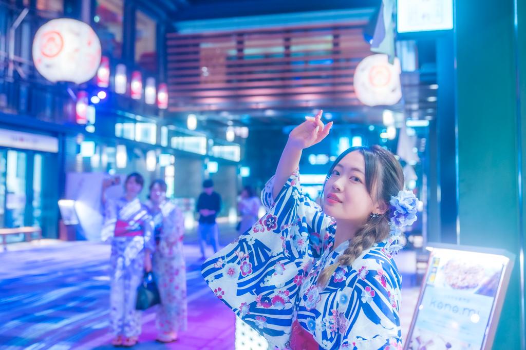 ECO EDO 日本橋 2019 ~五感で楽しむ、江戸の涼~ コレド室町1、コレド室町2の間の通りに 雰囲気のある提灯とプロジェクションマッピングによる演出 夏の夜の夕涼み