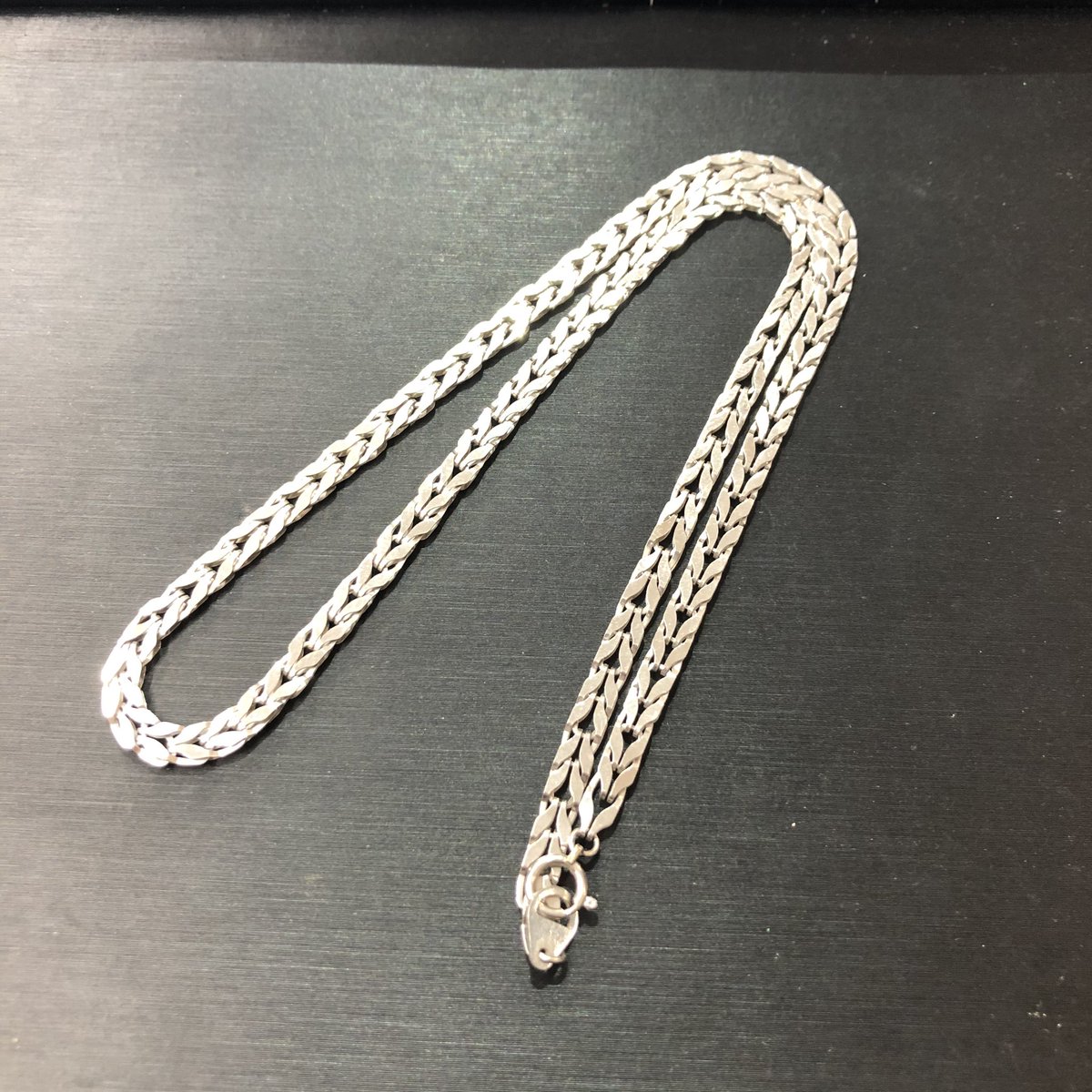 こちらはプラチナのネックレス!太めの印象ですが、細かく編み込まれていて繊細な動きです!