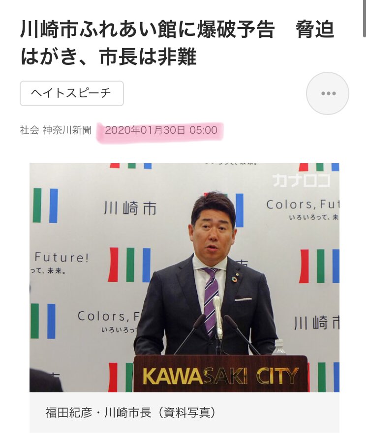 #川崎市 は 被 害 届 を 出 し て い な い#迅速 も何もない 一 ヶ 月 経 っ て い る 誰も……#被害届 を出していないのである!!! 脅迫相次ぐ川崎市ふれあい館https://headlines.yahoo.co.jp/hl?a=20200130-00000024-kana-l14 …Prikaži ovu nit -