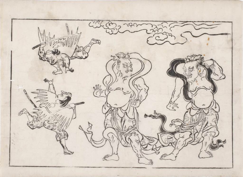 #川崎浮世絵ギャラリー 菱川師宣《仁王 小天狗の争い》 墨一色の墨摺絵。仁王や小天狗の表情がいいです。#neu_artpic.twitter.com/Fh9WEc2eLw