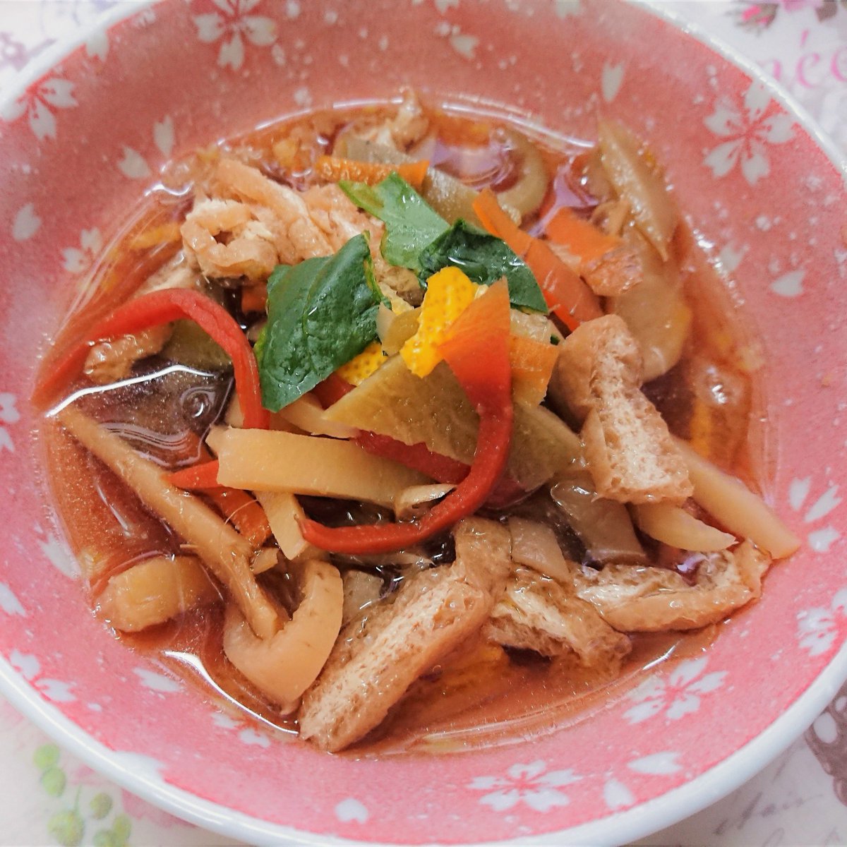 自家製干し野菜の煮物でございます。 わりと柔らかい食感で味も切り干し大根より クセがなくて優しい味でございます。 ( ̄‥ ̄) 干すことによって栄養価はかなりアップしております。
