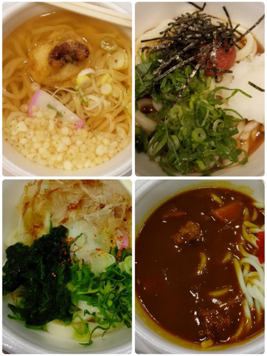 干支うどん、年明けうどん(あん餅入り)、ヘルシー年明けうどん(我が県副知事・要潤さん考案)