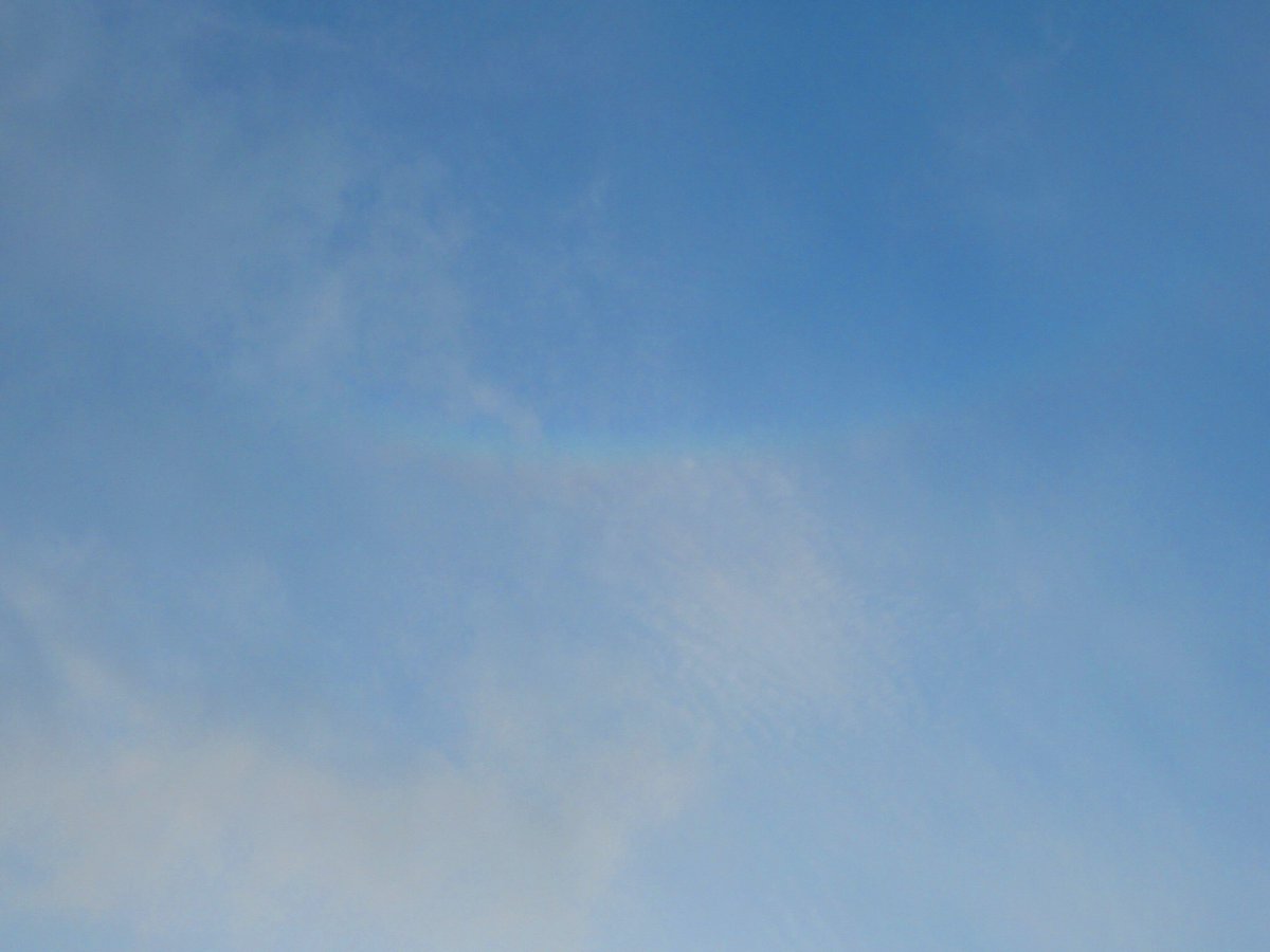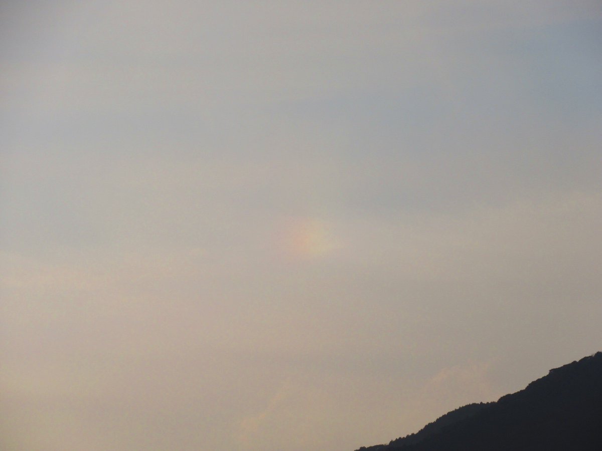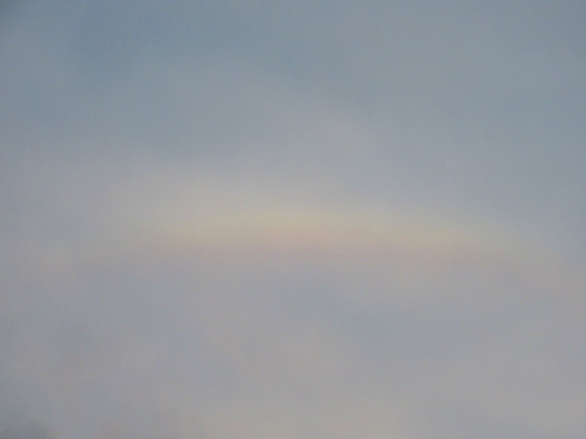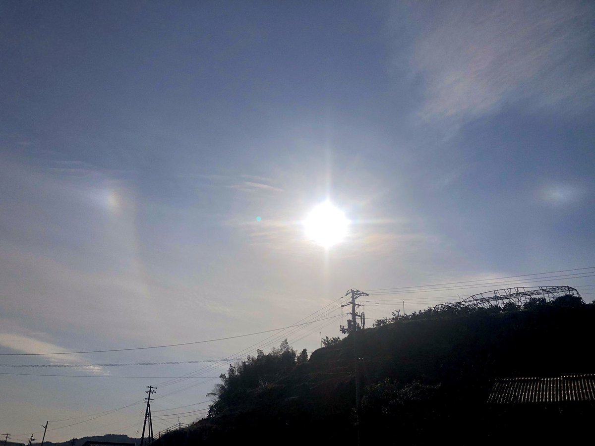 太陽の少し上にうっすらと虹。ちょっと大きめの円だから