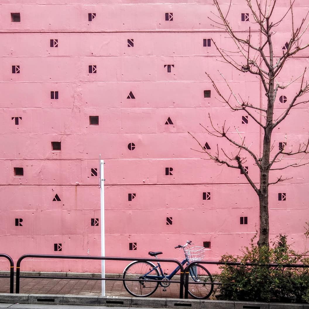 1913年創立の語学学校アテネ・フランセの校舎。壁がピンクとボルドー。派手でなく、不思議と街の景観に合ってますよね。 ボルドーの壁は知識、工芸、技芸の女神ミネルヴァの横顔!