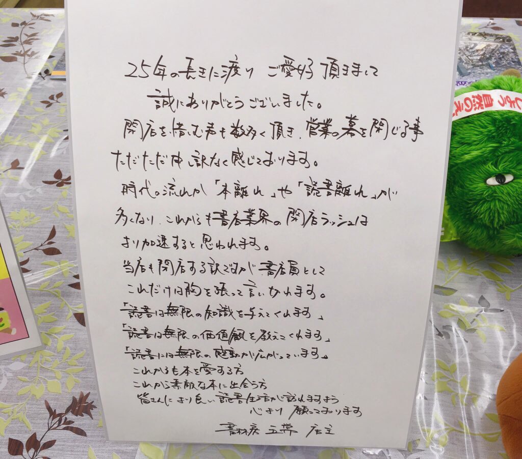 今夜閉店される書林房五常さんへ