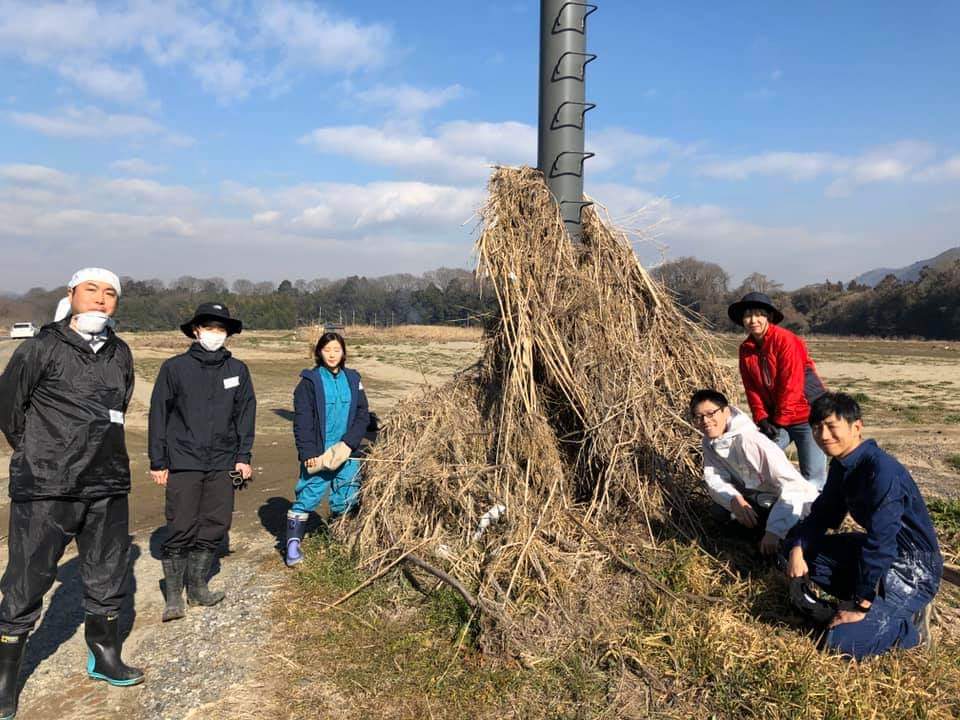 田んぼや電柱の周りにくっついた藁を取る作業を行いました