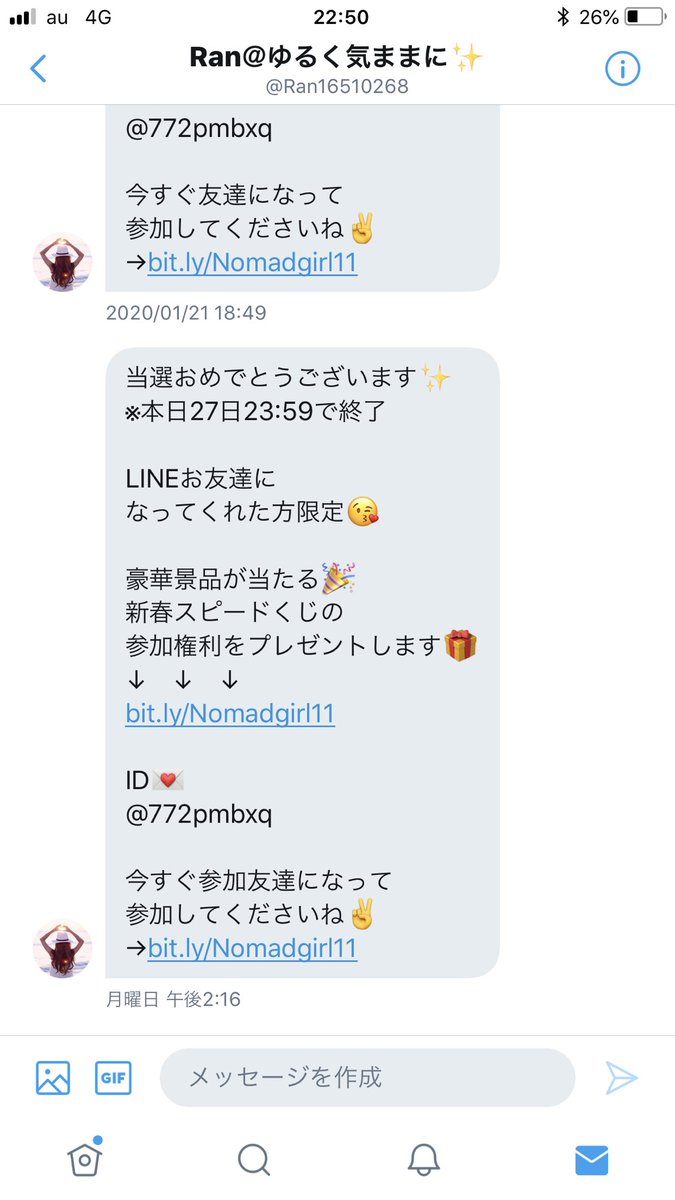 またまた悪人です。こやつらは無視し続けても何度も送ってくるしつこい奴らです。すぐブロックすることをすすめます みなさんきおつけてくだぱい^ - ^