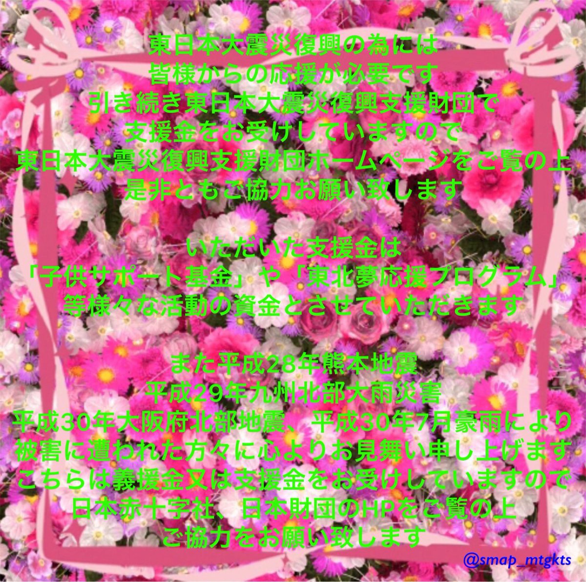 #SMAP×SMAP#スマスマ#復興に向けて手を繋ごう#思いやりの心 pic.twitter.com/Tp9bMGrk65