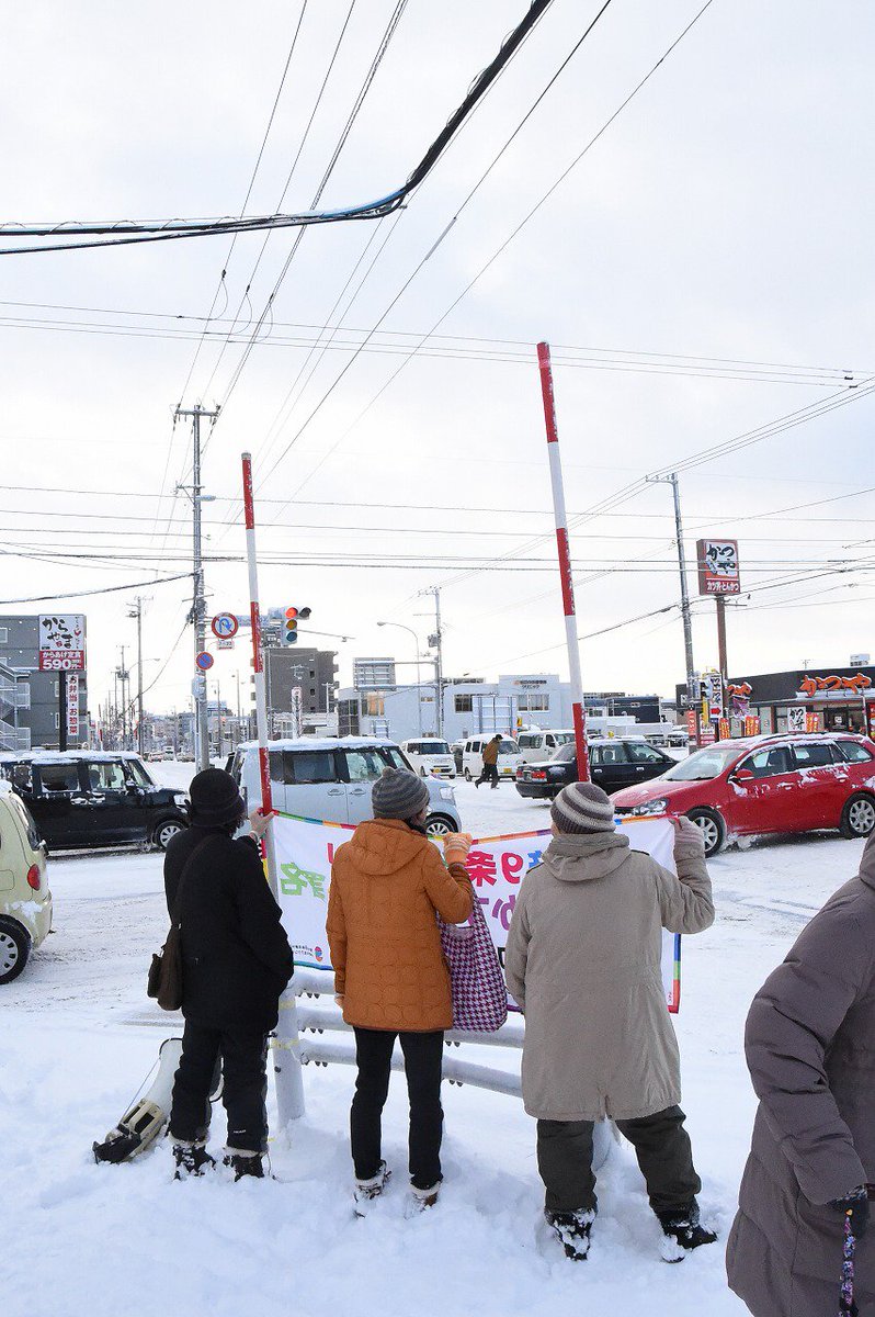 12月14日午前8時より、札幌市白石区国道12号と水源地通の交差点で戦争法の廃止を訴える宣伝。近隣の医療・介護施設、診療所友の会が宣伝。「11の憲法違反の安保法制を背負った自衛隊を憲法に書き込めば9条が憲法違反となる」と訴え。