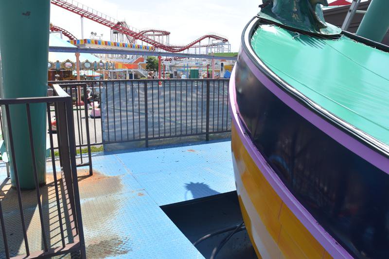 手取フィッシュランドのバイキングではなんとここを歩けます。振れ幅も国内ではかなり急なほうだと思う。急な事を自覚してか、身長制限が130cm以上。運転モードを弱めるんじゃなくて制限側で調整する攻めの姿勢も素敵。