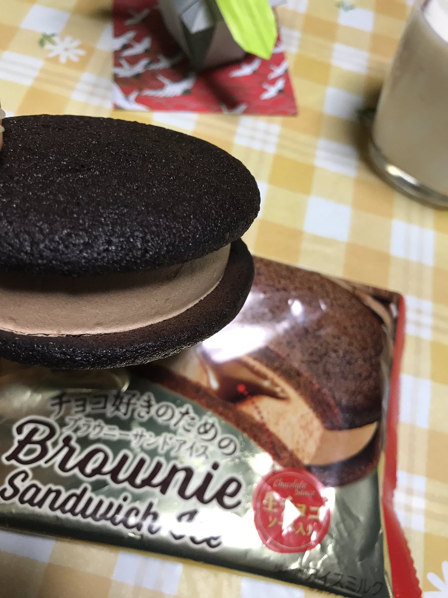 このサンドアイスめちゃおいしい!! 冷凍庫から出してすぐでもしっとり〜 生チョコソースもとろりん♪ ハニーホットミルクとよくあう〜ヽ( ̄▽ ̄)ノ