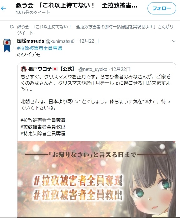 救う会公式が、以下のようなリツイートを、積極的に行うようになりました。 自らの立ち位置を、あからさまにすることに何のためらいもなくなった様子。 まあ、最初からその辺は露骨ではありましたが。