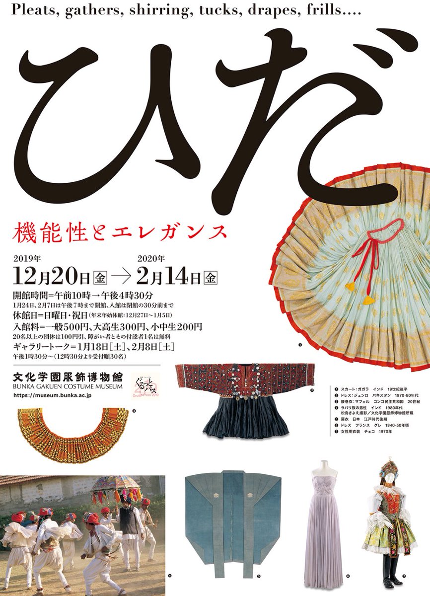衣服のひだについて。民族衣装からデザイナー作品まで。こじんまりとした博物館ですが、服について特化しています。2/14(金)まで