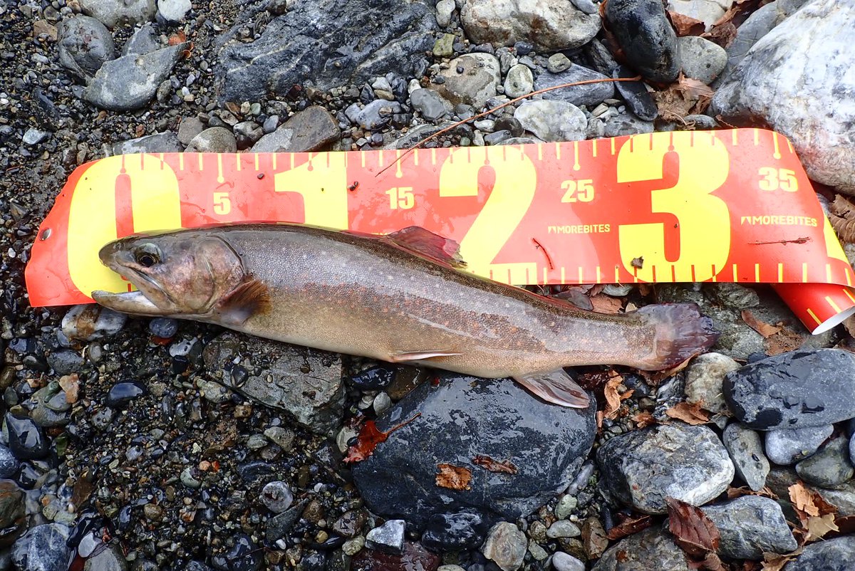 日原川の通称奥多摩町役場下にて 立派な尺岩魚をキャッチできました。尾ビレは腐敗していましたが、体高の太さとその貫禄に言葉を失いました...