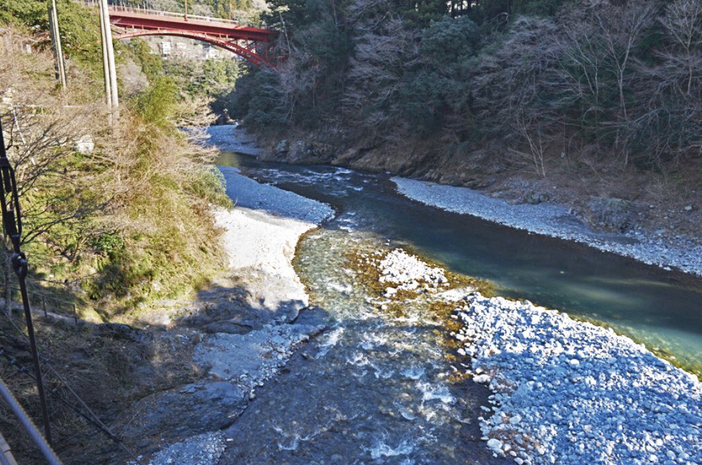 日原川と多摩川合流地点。氷川大橋より。 あ、E2ringさんかと思った? たまにはさんだよ〜ヘ(゚∀゚ヘ) 冬枯れの木々が良い感じ。 冬の奥多摩、渋可愛いよ(^q^)