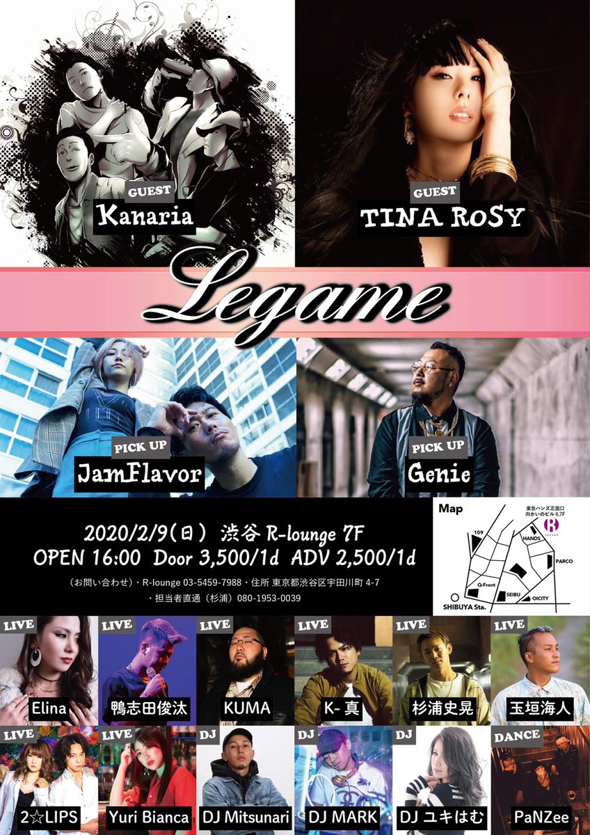 【Kanariaライブ情報】 2/9(日)16時~ 「Legame」 at渋谷R Lounge 7F エントランスで「カナリアを見に来た」と言えば 2,500円/1D付で入場可能です!