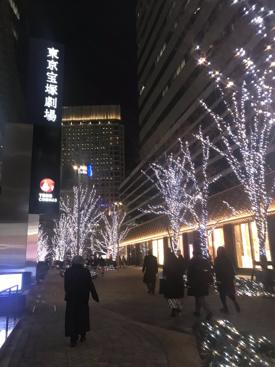 昨日の帝国ホテル前。 イルミネーションのせいか、 大人の雰囲気。 (丸の内〜銀座〜有楽町〜この界隈が大好きで、用事のないときも足を運んでいます)