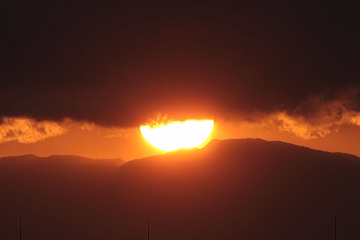 2月05日の日没です♪ 今日の日没は何というか、 とても荒々しく劇的に感じました