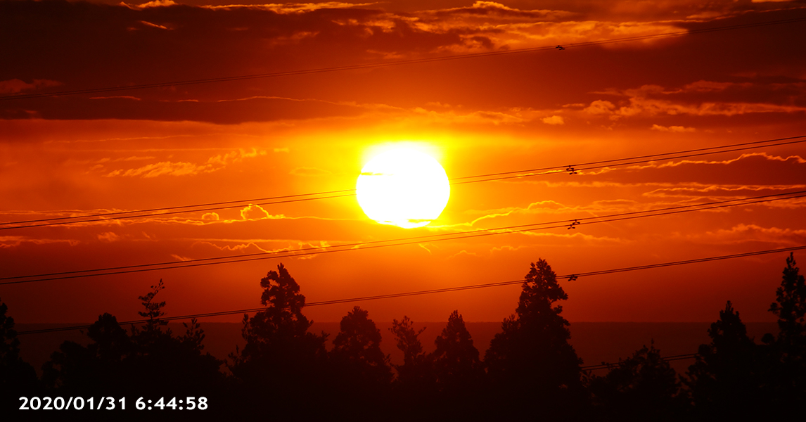 ぎりぎりの日の出 雲の層が増えて太陽が顔を出したときは、ぎりぎり写真に撮れる位置でした。