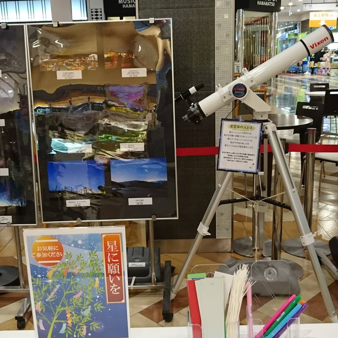 先日から始まった、新東名浜松SAの「星空案内人写真展」 昨晩からビクセン ポルタⅡ の展示も加わりました。 写真展は、宙ガールさんの参加も増えましたよ 7月7日には星空観察会も開催予定です。もちろんこの望遠鏡も活躍予定!