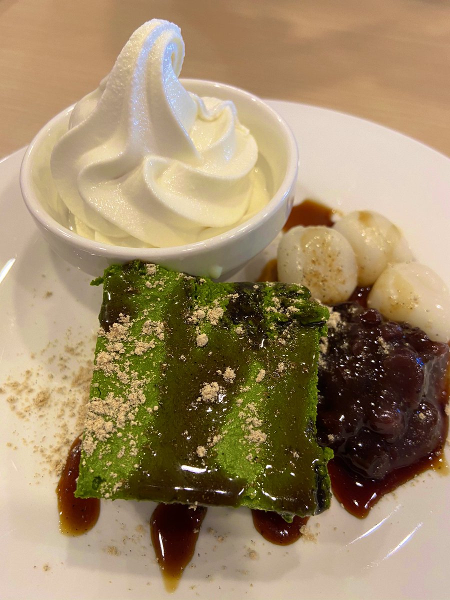 デザートに抹茶ババロアの盛り合わせ