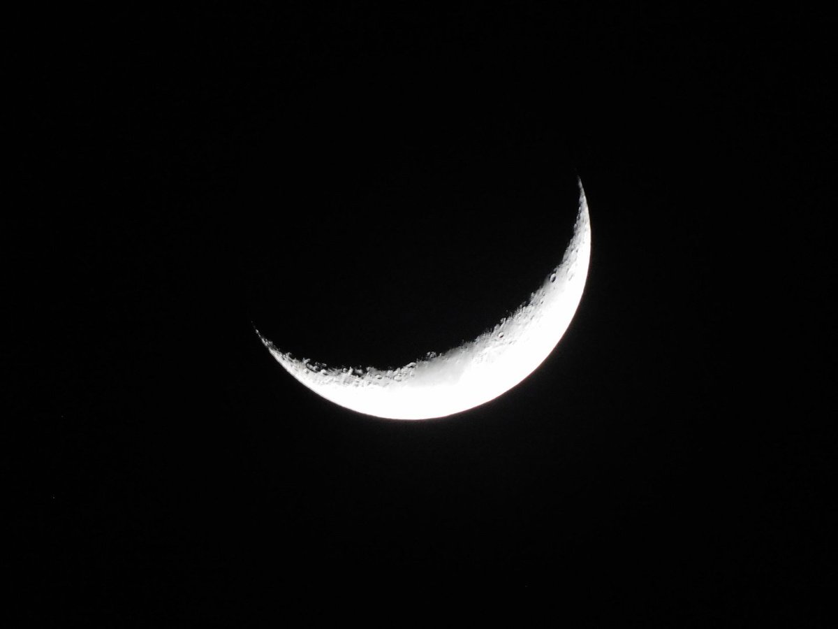 夕方まで、お月さま見えなくて諦めてたら、今すっきり晴れてきて夜空に輝いてます