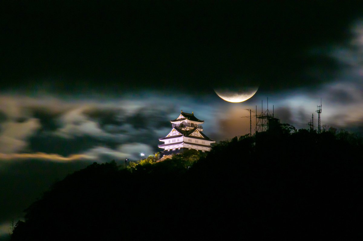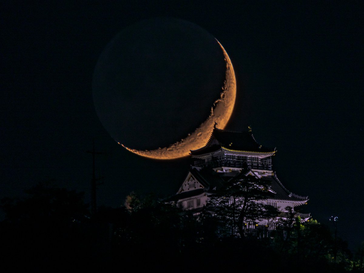 昨晩の岐阜城とお月様。 三日月は地球照にロマンを感じる。撮って出しではここまで表現できないので、地球照をレタッチであぶり出せる程度かつ、月の見えてる部分が白飛びしない露出でレタッチ過程もイメージしながら撮影します。