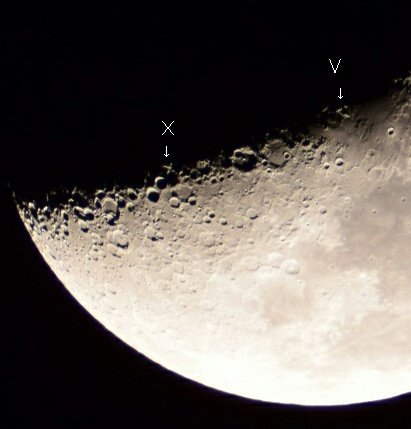 月の地形と太陽光の当たり具合で、わずかな時間のみ見ることができます。