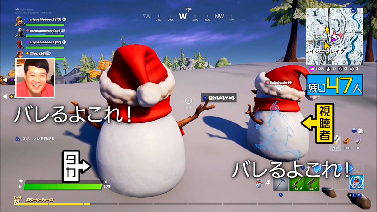 @FortniteJP たいめいけん茂出木シェフ邸でフォートナイト!ゲストは青春高校3年C組・日比野芽奈さん▼止まらない!茂出木シェフのおもてなし▼タカと雪だるま▼高3の日比野ちゃん涙…泣かせたのは!?▼最後に有吉が仕込んだ豪華家ゲスト発表!#有吉ぃぃeeeee#青春高校3年C組 pic.twitter.com/bsshzM7Ze5 -
