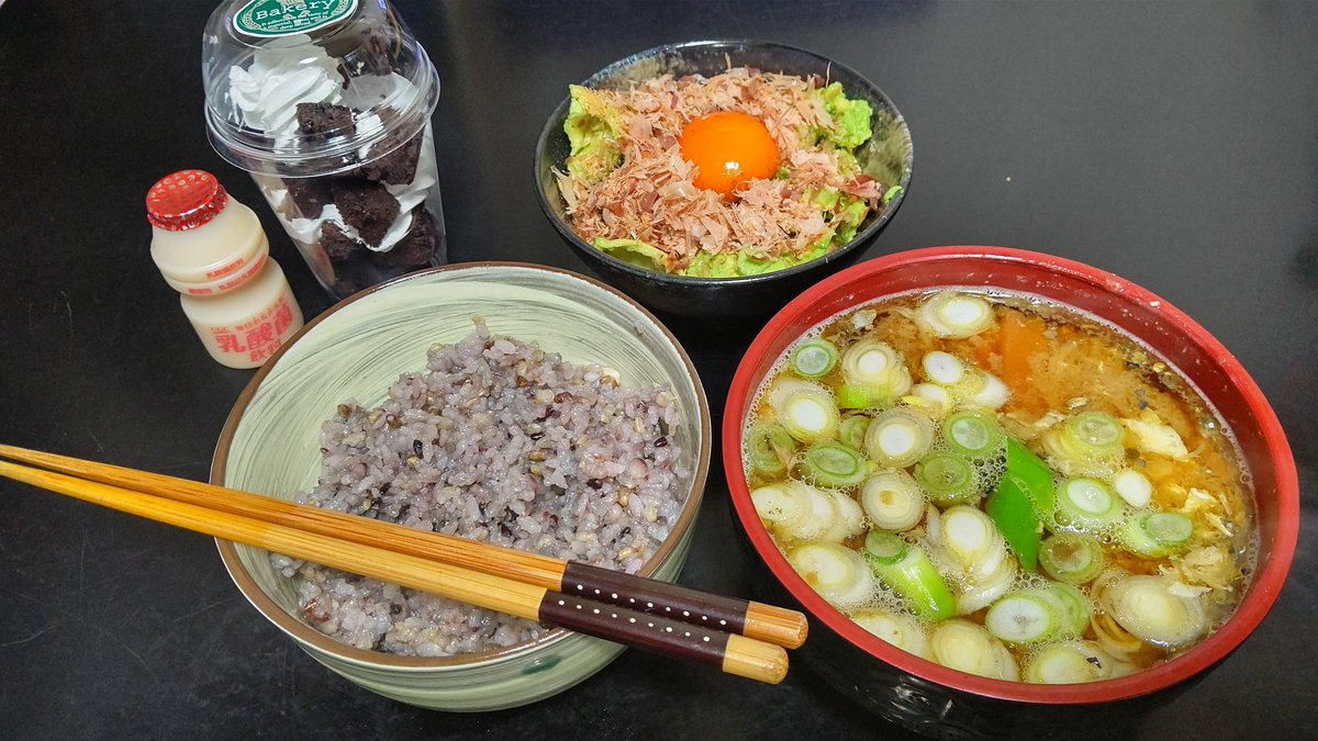 ご飯、みそ汁、卵、しらすおろし。 ご飯の量が多い。。 が、残すのもったいないから食べちゃえ!