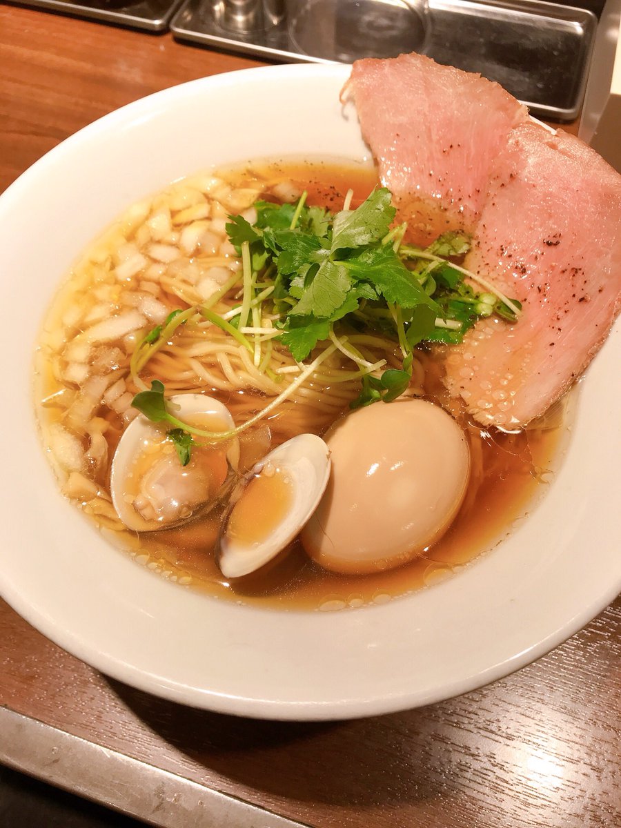 麺屋ねむ瑠 (本郷三丁目) 岳野 赤鶏と蛤の淡麗中華そば(醤油) そのまま食べられる替玉 完まく! 前回訪問時は烏賊煮干だったので今回はこちら。2つのウマさの頂上決戦〜あなたはどっち派〜