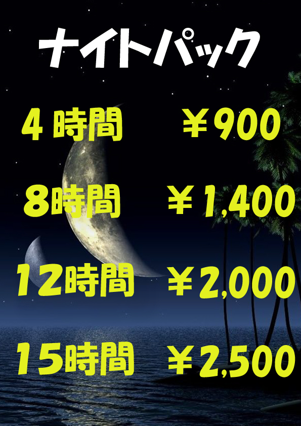 ナイトパック受付してます! イスのお席は22時まで 200円引きになりますので ご来店おまちしてます!