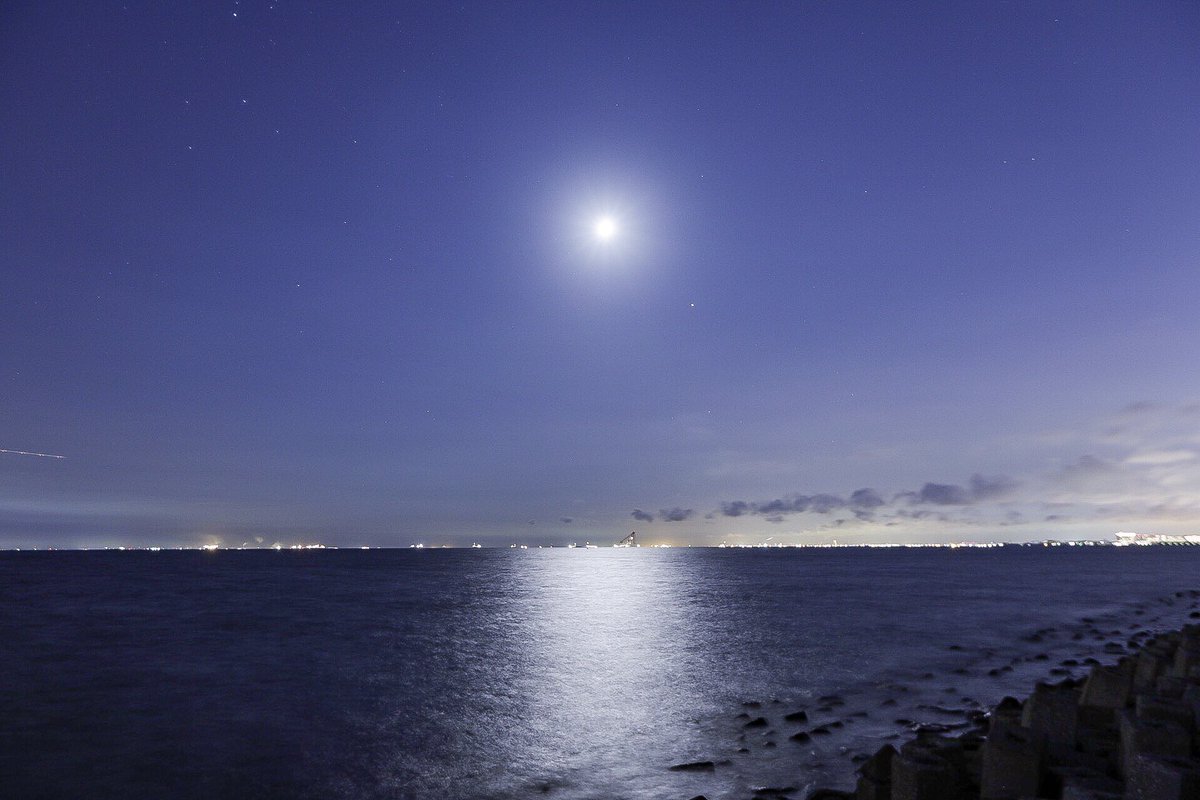久しぶりに、 真夜中のほにゃらら! 午前0時30分 荒川本流の土手上から、