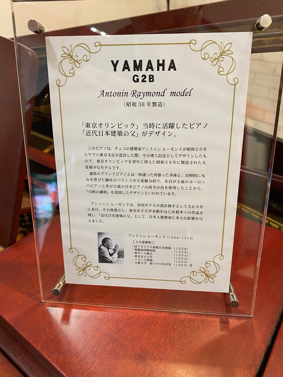 チェンバおおまち1階に、翌年に東京オリンピックを迎えた昭和38年製造のグランドピアノが展示されました! ピアノは建築家アントニンレーモンド氏がデザインした希少モデルです!! レストアしておりませんので、当時の雰囲気が漂っていますよ!