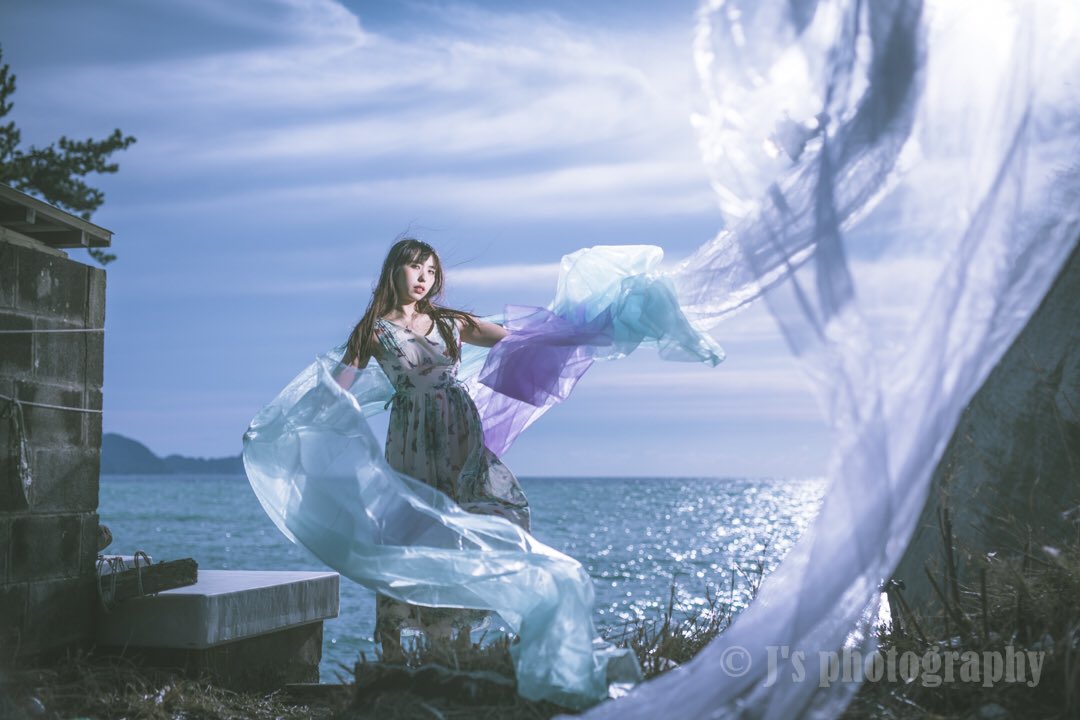 10mの布を3本使った撮影 梅雨明けの今日にぴったりな写真のような気がしますが半年前の1月に撮ってます(寒い