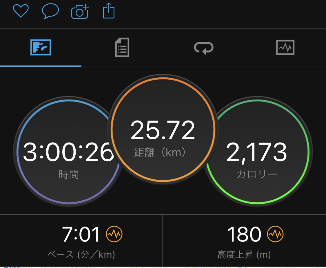 今朝はなかなか気持ちが乗らなかったけど、日差しが出ていて気持ち良さそうだったので、気持ちを入れ替えてラン。今日はレース前半30㌔想定。15㌔までは4:25設定、足を貯められた。それ以降は4:15設定。ラスト2㌔はペース上げてフィニッシュ。本番はもう少し抑えていきたいな。