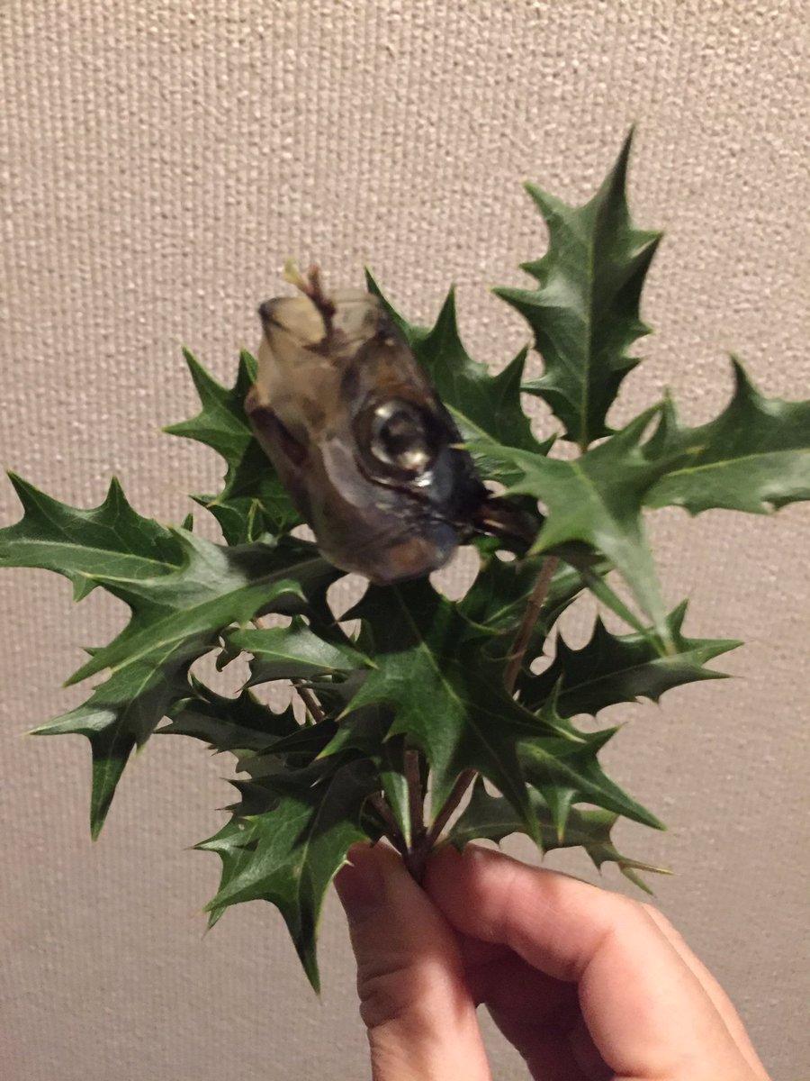 実家は節分に焼いた鰯の頭を柊に刺して屋外に飾ります。(来年の節分まで、そのままです)