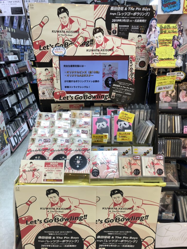 #桑田佳祐ThePinBoys】 1/1発売『レッツゴーボウリング』発売日! "謎のストライク製造機、正体不明のスーパー・ガター軍団"の異名をとる新ユニット、桑田佳祐 & The Pin Boys。各所で大きな話題を呼んでいる史上最大のボウリング大会"KUWATA CUP 2019"へ向けた書き下ろしの新曲! 特典:ステッカー pic.twitter.com/4puOsqN4xJ