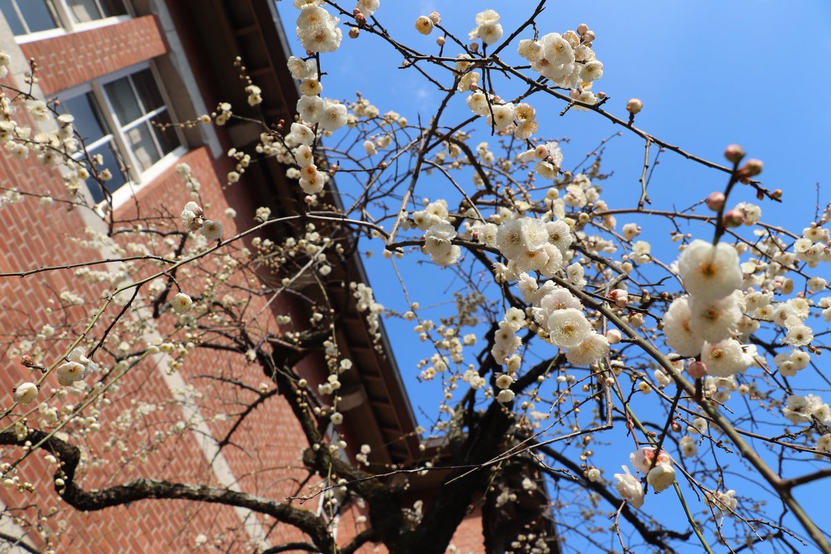 今出川キャンパスの梅の木も少しずつ花開いてきました