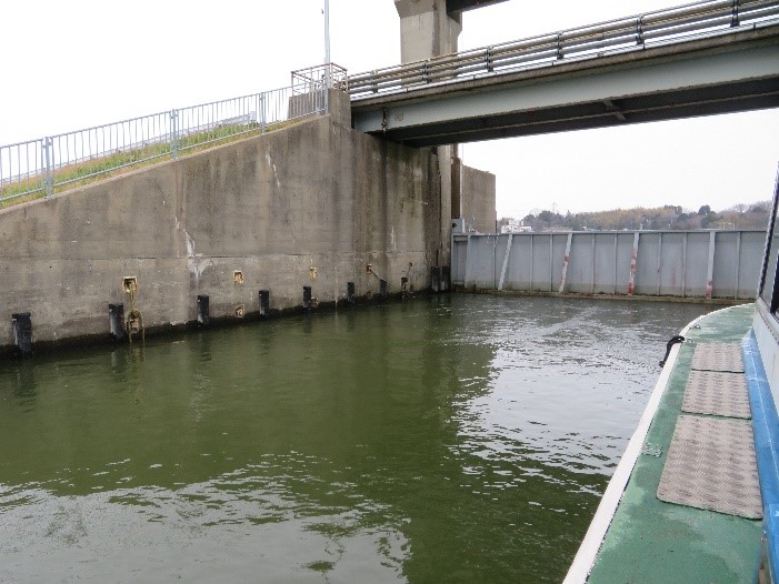 #横利根川 と#北利根川 の合流点に新横利根閘門が設置され、水位差を調整することによって船舶が航行できます。このときは約40cmの水位差がありました。#霞ヶ浦pic.twitter.com/FURRRtdngU