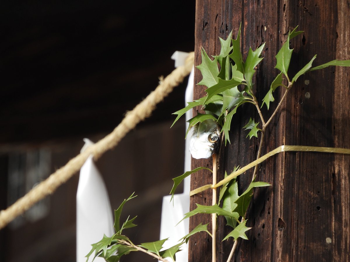 #樹木#過去写真 去年神社で見つけました。節分に際し、『ヒイラギ』の枝にイワシの頭を挿したものを門戸に掲げることで魔除けになるとされています。また、節分と関わる樹木はヒイラギだけでなく、トベラという樹木を掲げたり、ウバメガシの枝を焚いたりする風習もあるそうです。pic.twitter.com/aBV8Z1EVyi