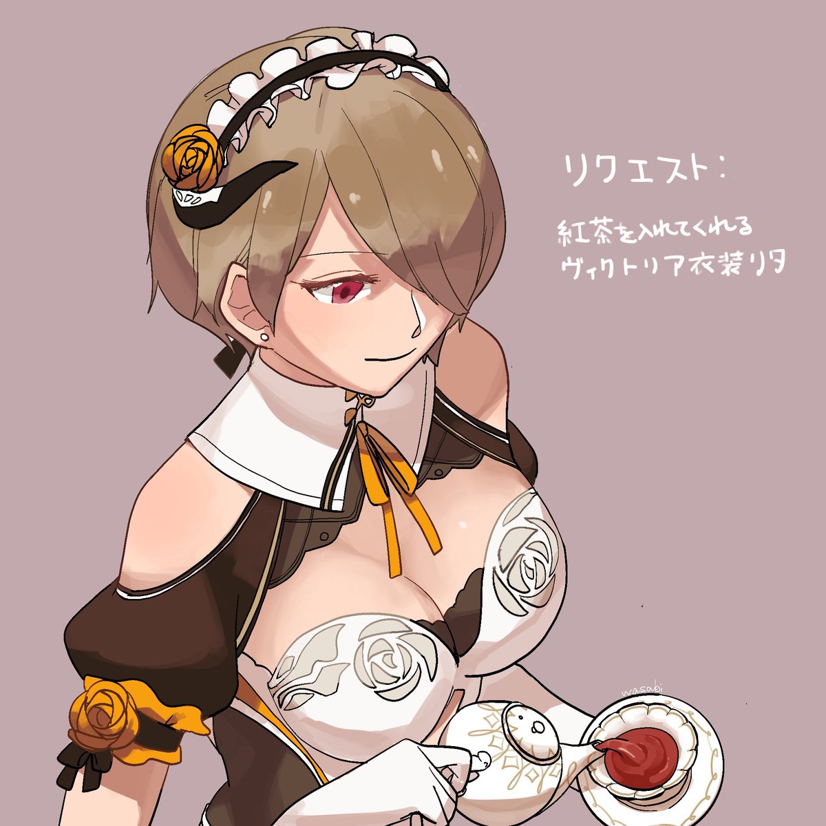 リクエストで「紅茶を入れているヴィクトリア衣装リタ」 昨日は毎日投稿絵を載せられなかったので今載せておきます!