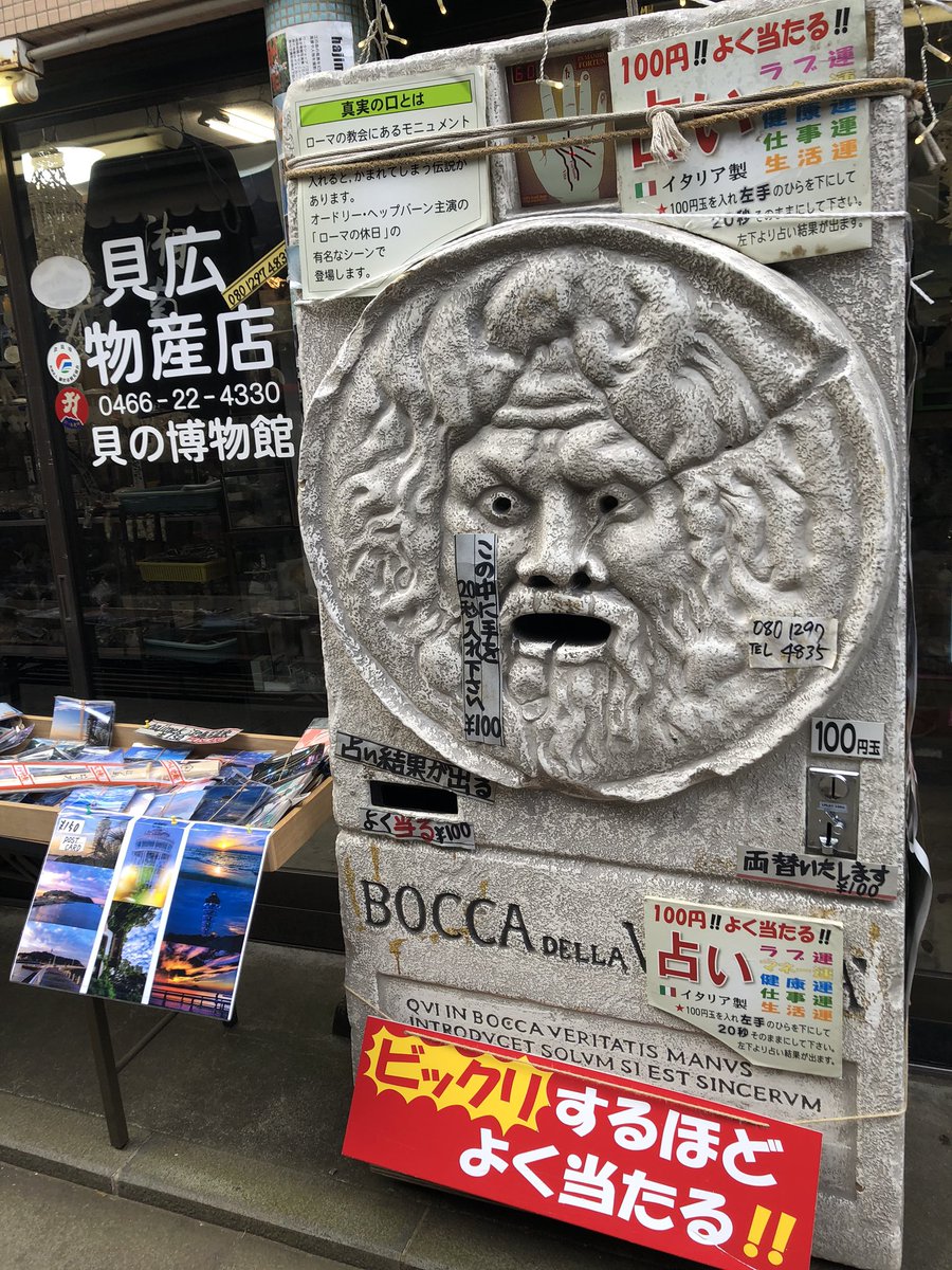真実の口の占いの横のスペースで販売しているので、占いの待ち時間にでも見てもらえたらと思います! 貝広物産店