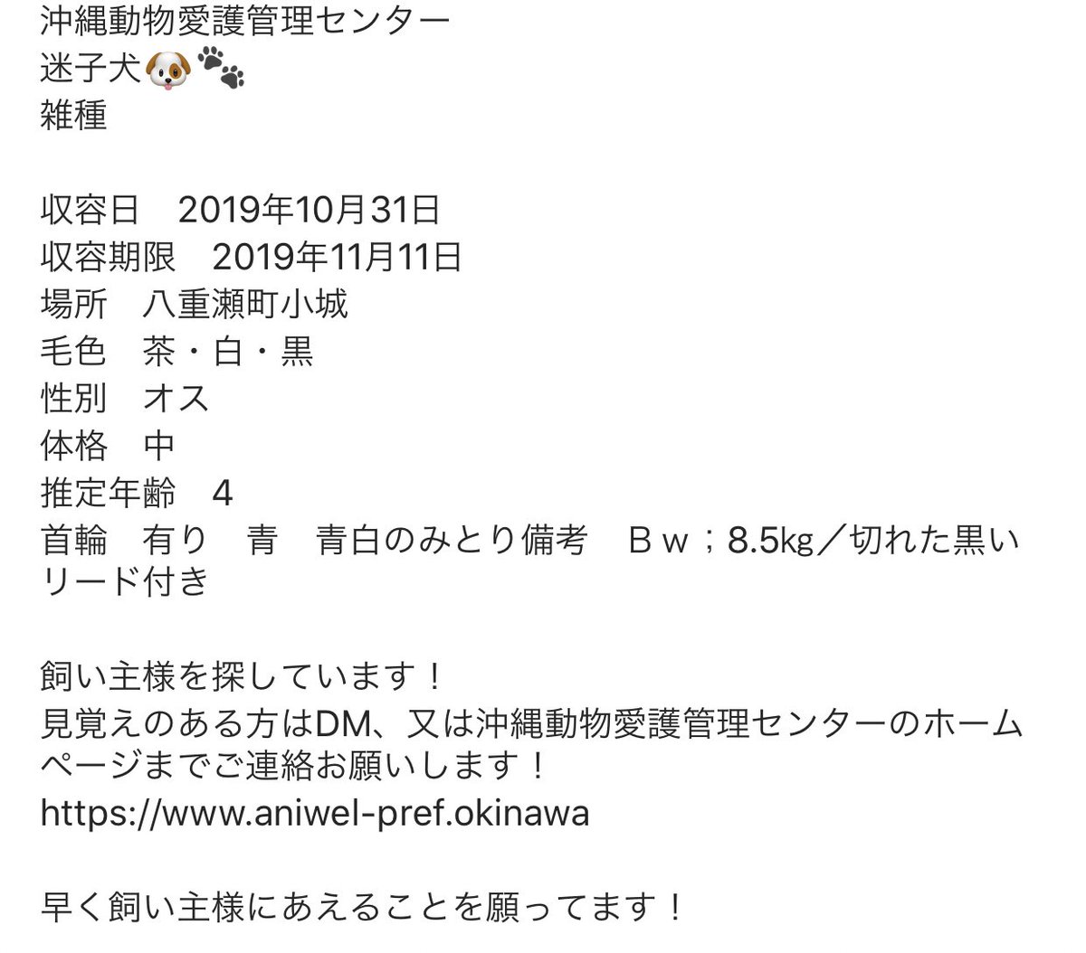 #沖縄県#沖縄#沖縄県宜野湾市#沖縄県名護市#沖縄県那覇市#沖縄迷子犬#沖縄迷子#沖縄保健所#沖縄動物愛護管理センター pic.twitter.com/pSEbyxdrrA