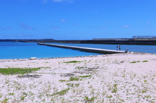 「安田漁港海岸」は明るい水色が好印象。田舎なので人影はほとんな~い。実は「釣りスポット」で有名。
