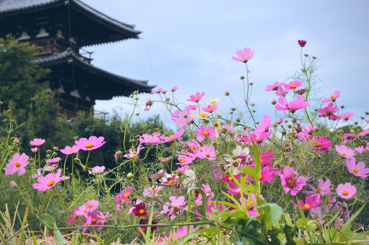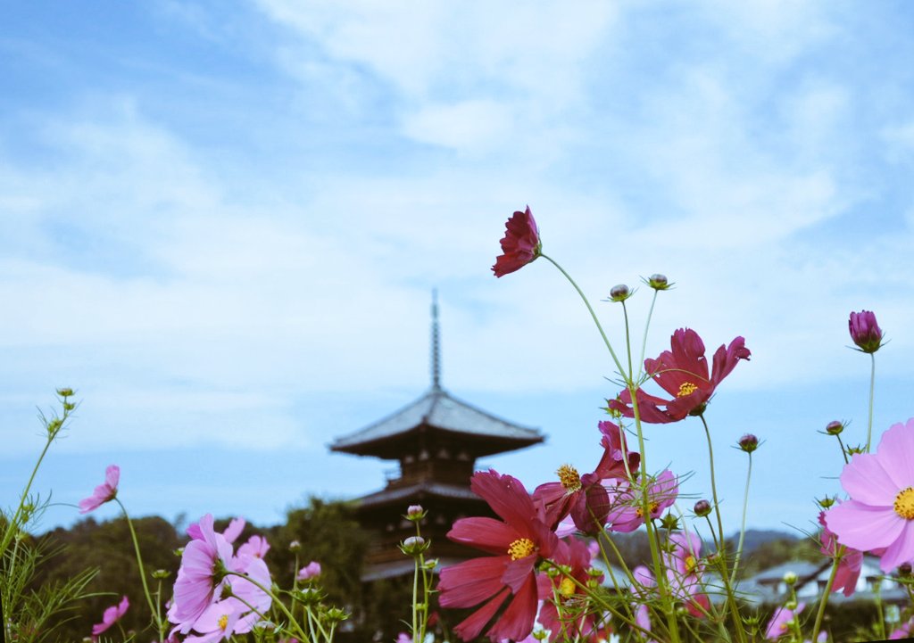 #法起寺#コスモス#秋桜#三重塔#ハイキー#ファインダー越しの私の世界ᅠpic.twitter.com/bWrAAA462r