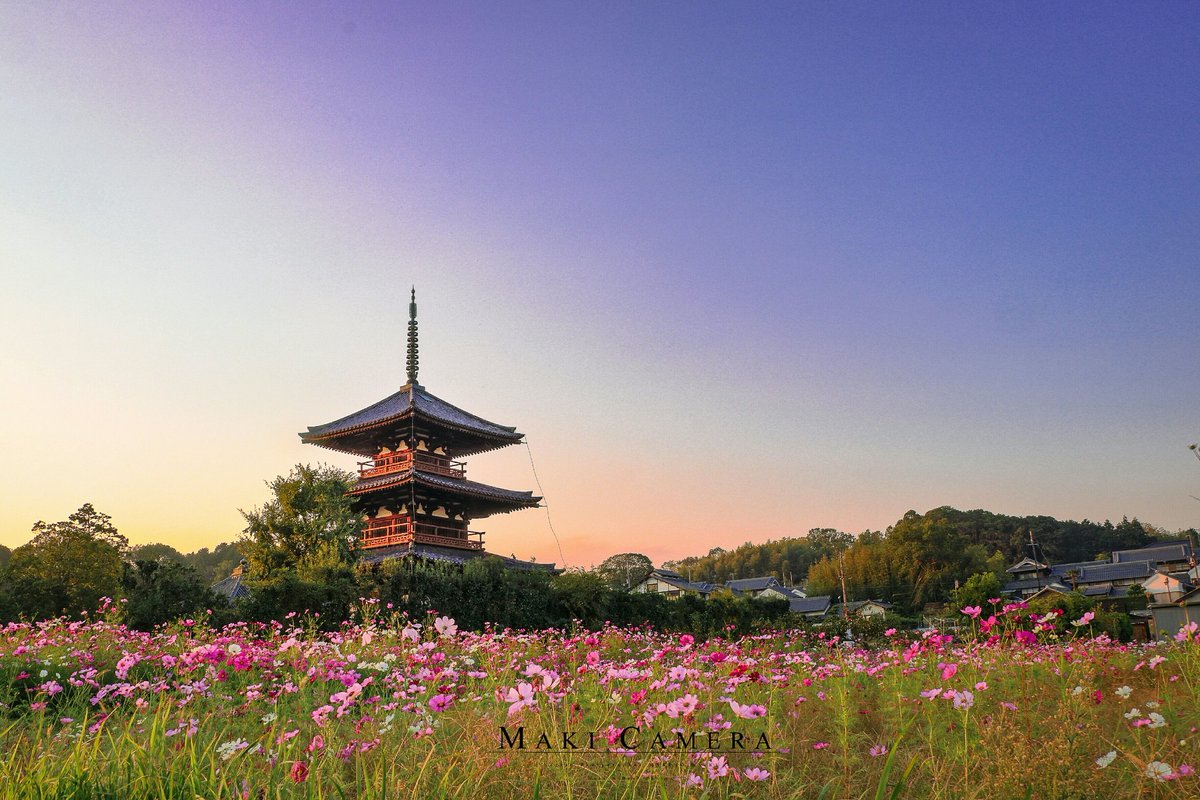 #法起寺#コスモス#秋桜#夕暮れ#夕日#ファインダー越しの私の世界ᅠpic.twitter.com/maGw4aTvRC